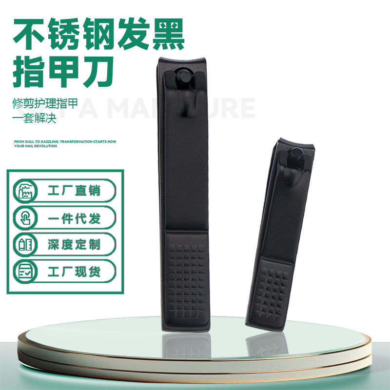 メーカー卸売ステンレス鋼爪切り黒マニキュアとペディキュアツール平口湾曲口斜め爪はさみ