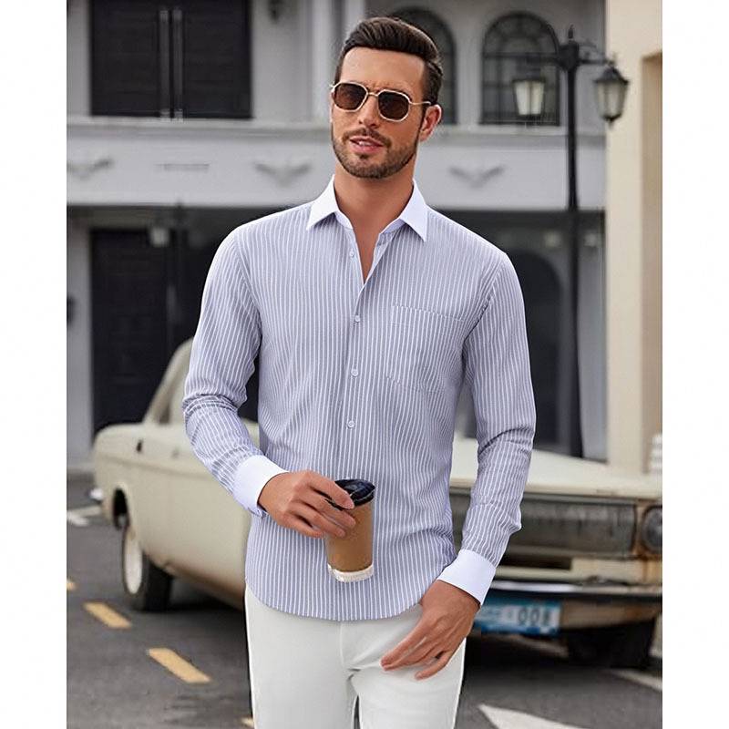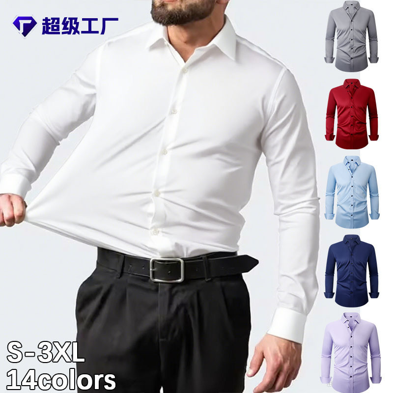 2025年越境アマゾン人気商品 白長袖シャツ メンズフォーマル 大きいサイズ メンズ服 防シワ 四方向ストレッチシャツ