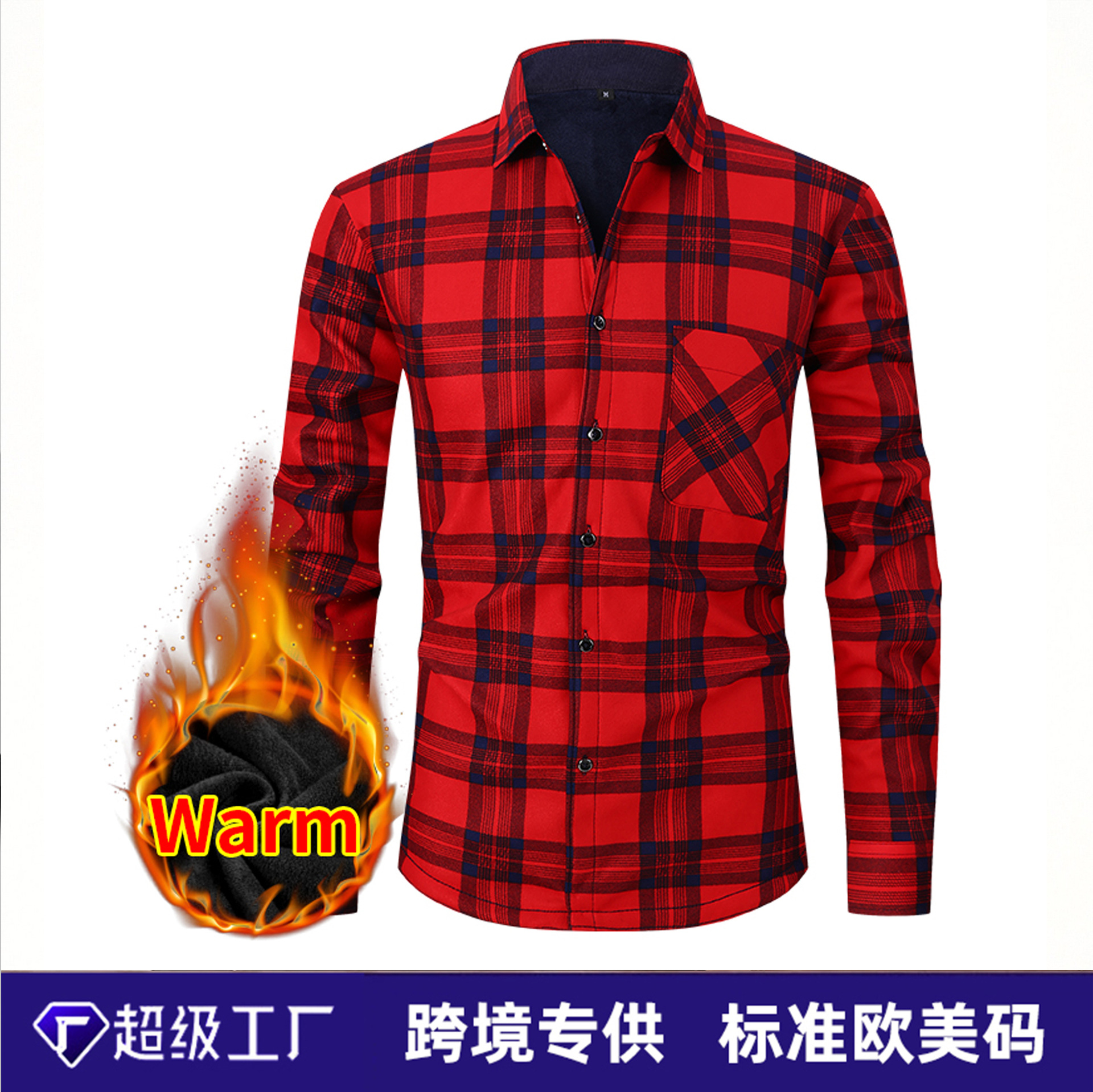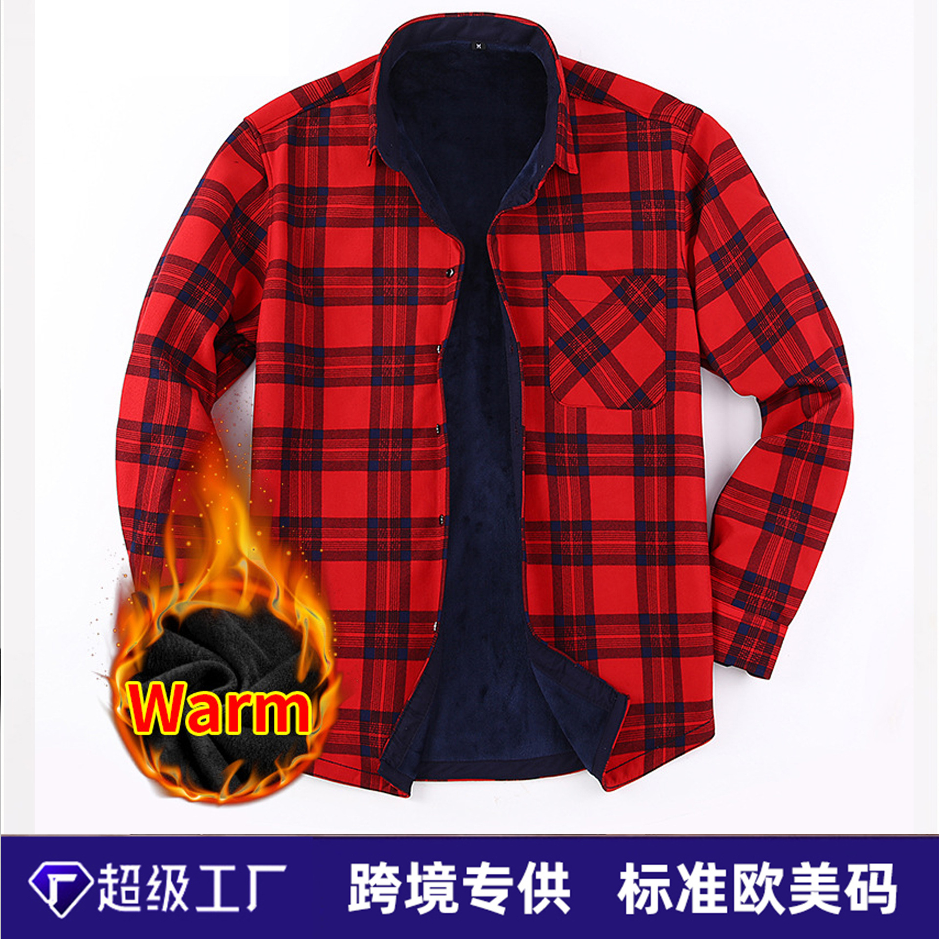 外国貿易の国境を越えた欧米とベルベットのカジュアルな厚手の保温シャツ男性秋冬の長袖の大きいサイズの秋冬のシャツ