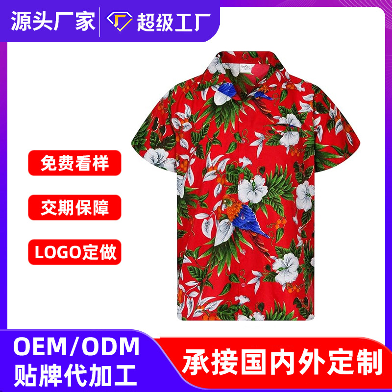 2025年夏 レトロプリントシャツ メンズ 半袖 キューバンカラー ハワイアン柄 トレンド ビーチスタイル