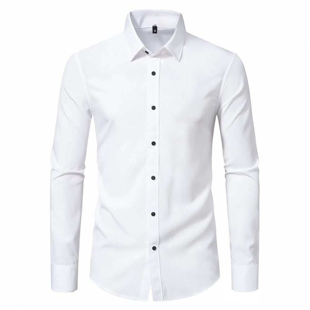 クロスボーダーメンズ長袖白シャツ夏高級感通勤シンプル寸シャツパーティーファッションビジネスシャツ男性式