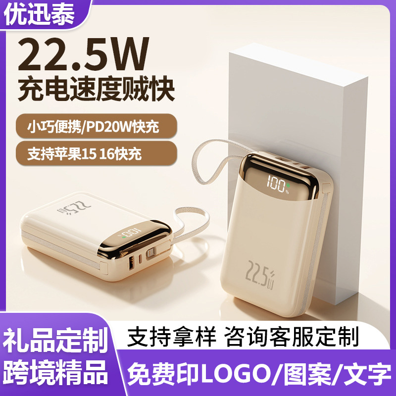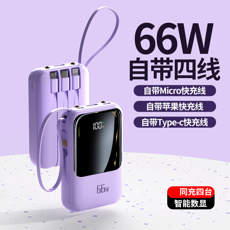 66W 急速充電、コンパクト、ケーブル内蔵パワーバンクギフト、カスタマイズされた超薄型、Huawei、Xiaomi、Apple モバイル電源に適しています