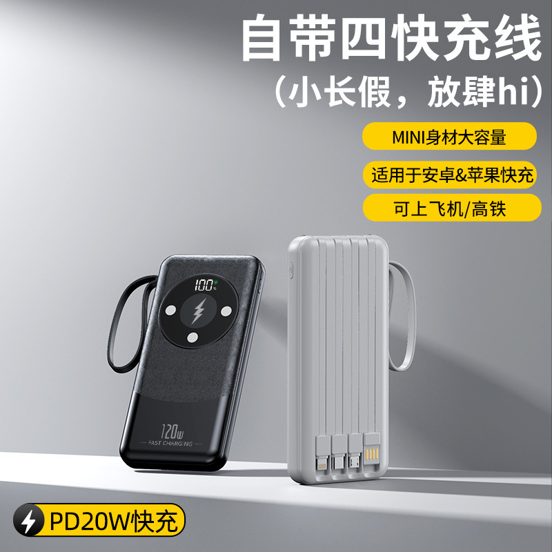 新しい 120W 超高速充電パワーバンクには、Apple および Huawei のモバイル電源のカスタマイズに適したケーブルとスマート デジタル ディスプレイが付属しています
