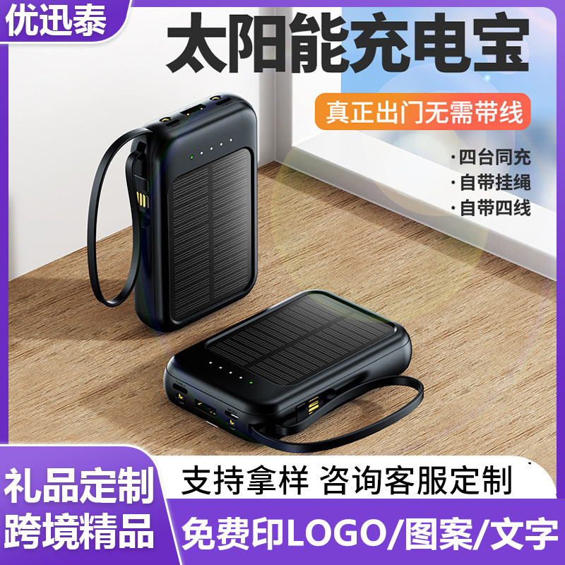 ケーブル内蔵ソーラーパワーバンク、ポータブル、超大容量、20000 mAh、安定したモバイルパワーバンク、ロゴ印刷