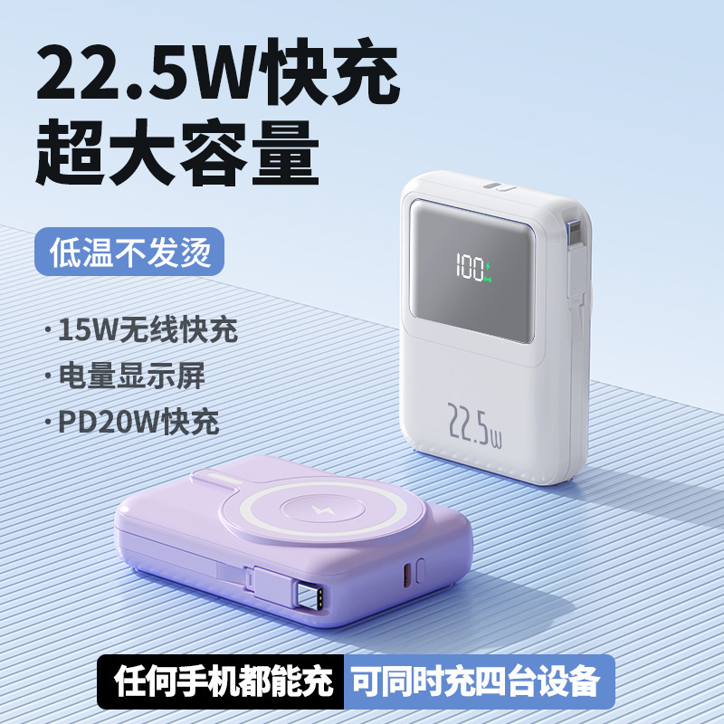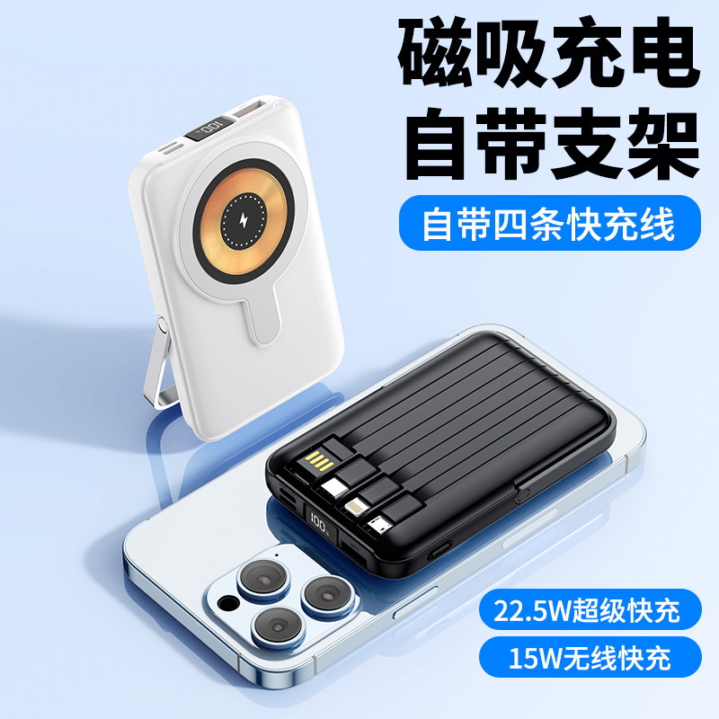新型急速充電マグネット充電宝20wスタンド携帯小型透明大容量は四線移動電源を持っています。