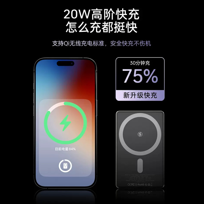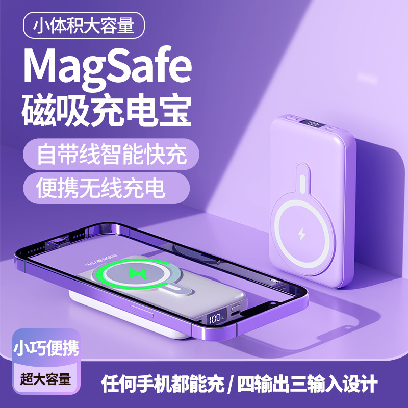 マグセーフデジタル磁気吸引無線充電宝低温皮紋軽薄携帯大容量急速充電モバイル電源