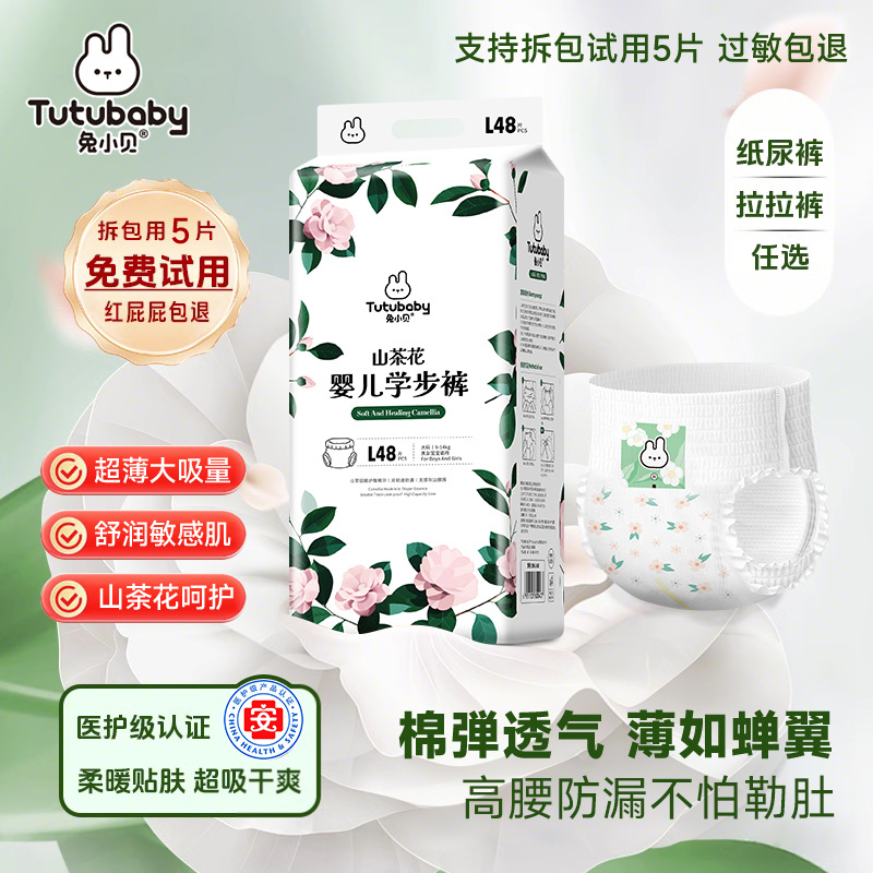 Rabbit Xiaobei Camellia 超薄型ドライ通気性ベビーおむつプルアップパンツ男性と女性のベビーおむつ 5XL サイズ