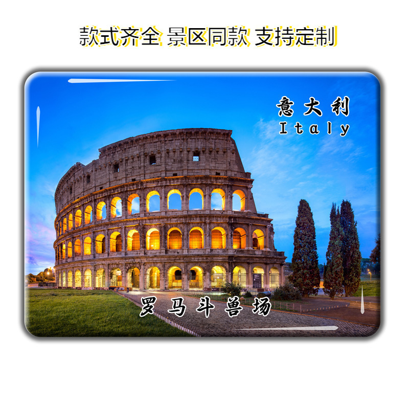 ローマガラス冷蔵庫コロッセオ磁気お土産建物都市ツインタワー風景世界ステッカー旅行