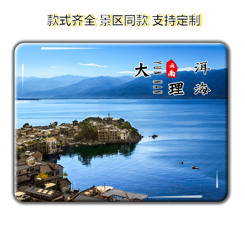 冷蔵庫用マグネット、旅行記念品、古鎮大理、古代都市、玉龍雪山、束河、ガラス、麗江磁気吸引、洱海