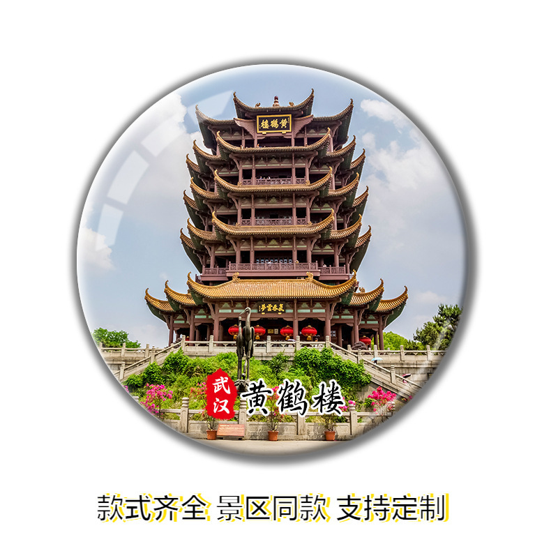 湖北黄鶴楼武漢大学恩施武当山水晶ガラス冷蔵庫に磁気シール武当風景記念品を貼っています。