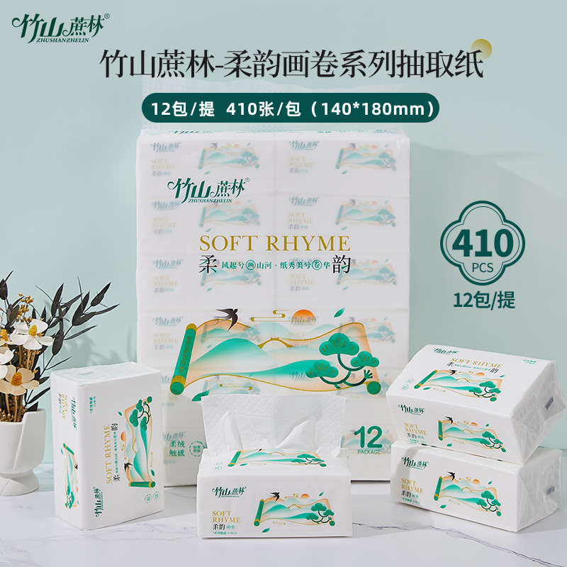 竹山サトウキビ林抜紙ティッシュの柔らかい韻12包410枚の厚い湿った水のティッシュの家庭の原生の木のオールの5階