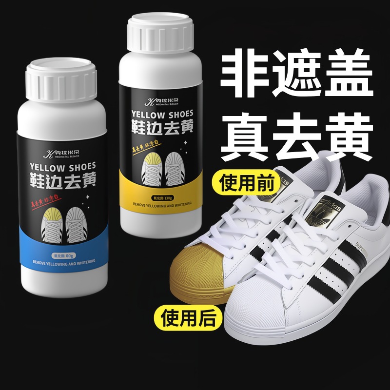 靴底の黄ばみ、靴の縁の黄ばみ除去、還元剤、白い靴の洗浄剤、美白・補修加工品、靴のアッパー