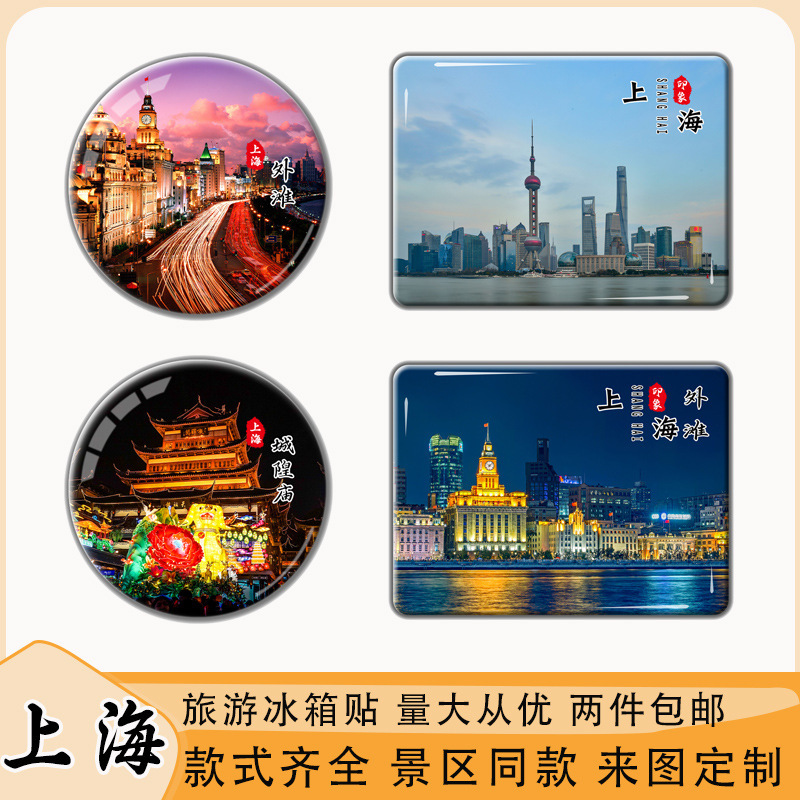 上海城隍廟黄浦江外灘観光ガラス冷蔵庫マグネット風景お土産東方真珠磁気吸引