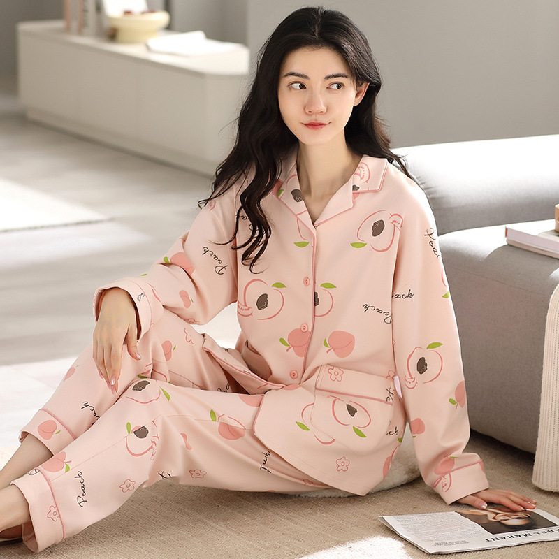 純綿パジャマレディース春秋新作折り襟長袖長ズボンゆったりカーディガン純綿甘美ホームウェアセット