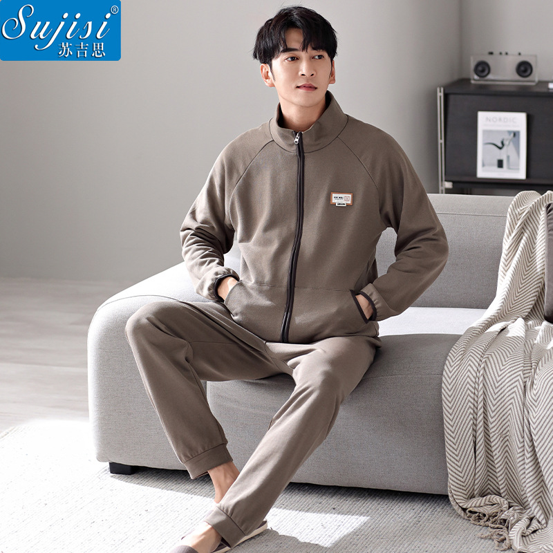 新しい秋冬の男性の綿のカーディガンのファスナーの長袖のズボンの家は純綿のシンプルで快適なスポーツウェアを着ることができます。