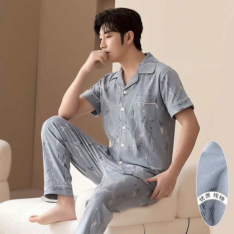 2023新型パジャマ男性夏純綿半袖半ズボン家庭服男性用夏薄着セット
