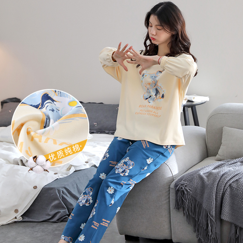 蘇吉思パジャマ女性長袖純綿セット少女かわいいアニメ大サイズカジュアルゆるい純綿ホームウェア