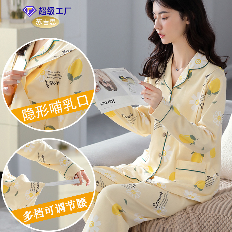 純綿月子服妊婦パジャマ春秋長袖出産前産後側開授乳服ホームウェアステッカーオーダー