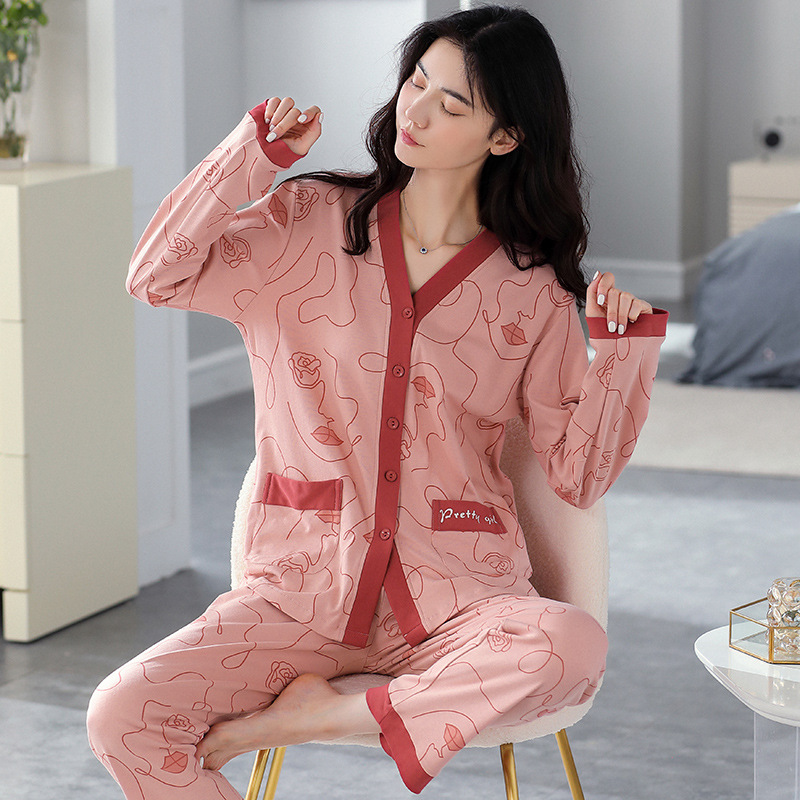 純綿月子服パジャマ出産前産後側開き授乳服純綿妊婦春秋ルームウェアオーダーメイドステッカー