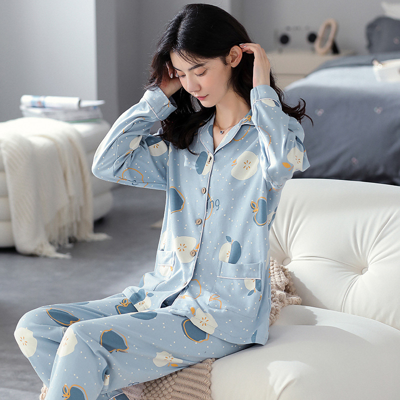 秋冬の新型ルームウェアの女性の純綿の小さいプリントのシリーズの長袖のファッションは簡単です。