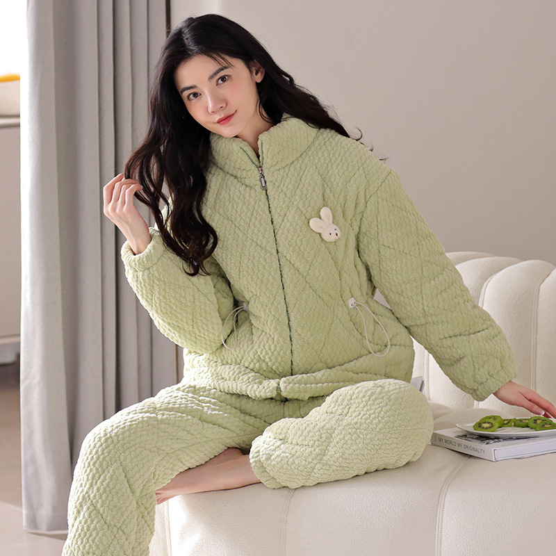 冬の新型パジャマさんは保温してカーディガンを厚くして、綿のミルクのベルベットを挟んでカジュアルな家のスーツを着ることができる