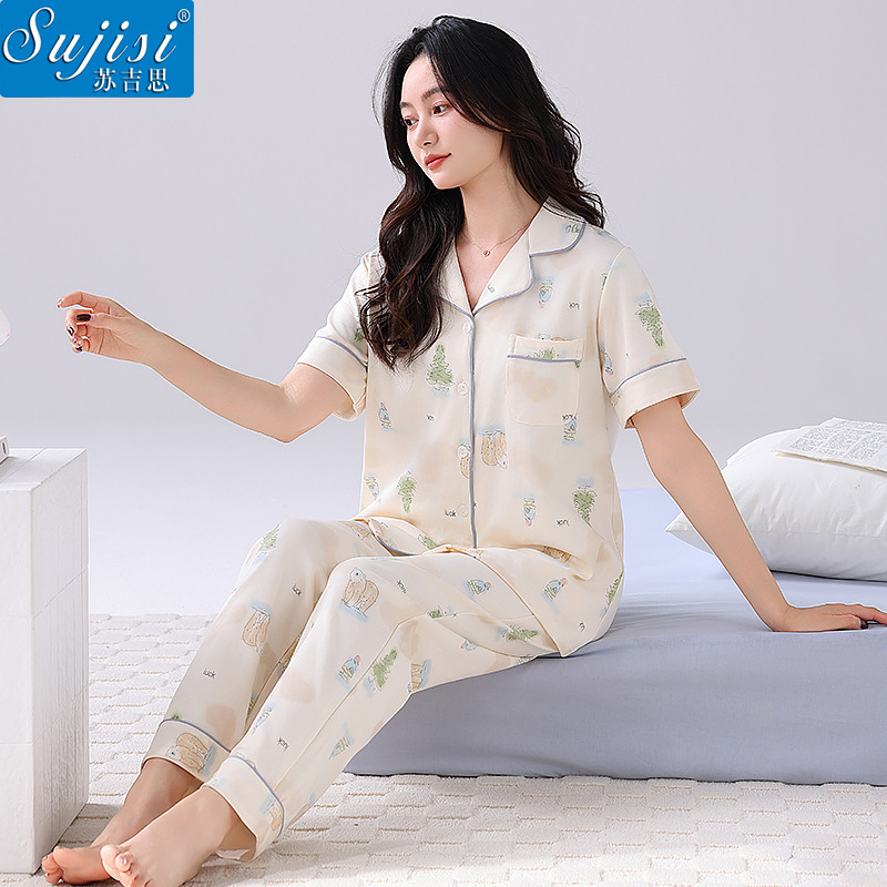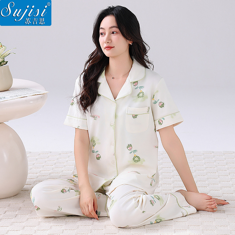 雲の綿の女性のパジャマは胸のパッドの夏の新型の半袖のズボンのカーディガンを持っています。