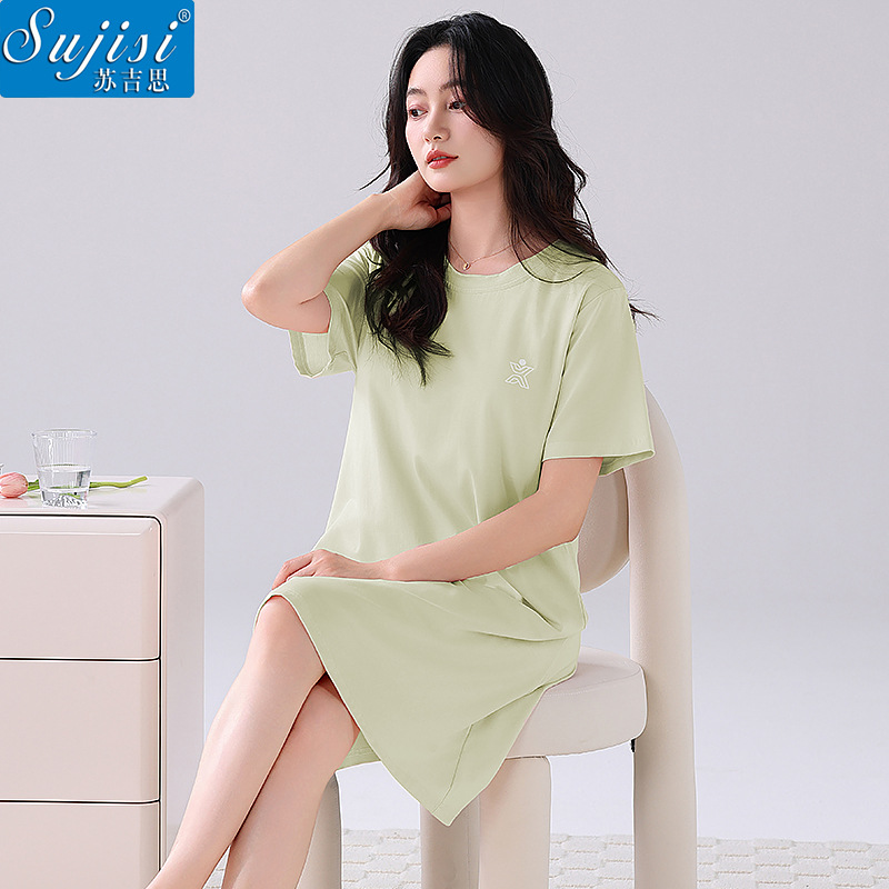 新しいパジャマの蘭精モーデールの女性の中で長い胸のクッションの項の夏の寝ますスカートのゆったりしている丸首の家の服の寝ますスカートの女性の夏