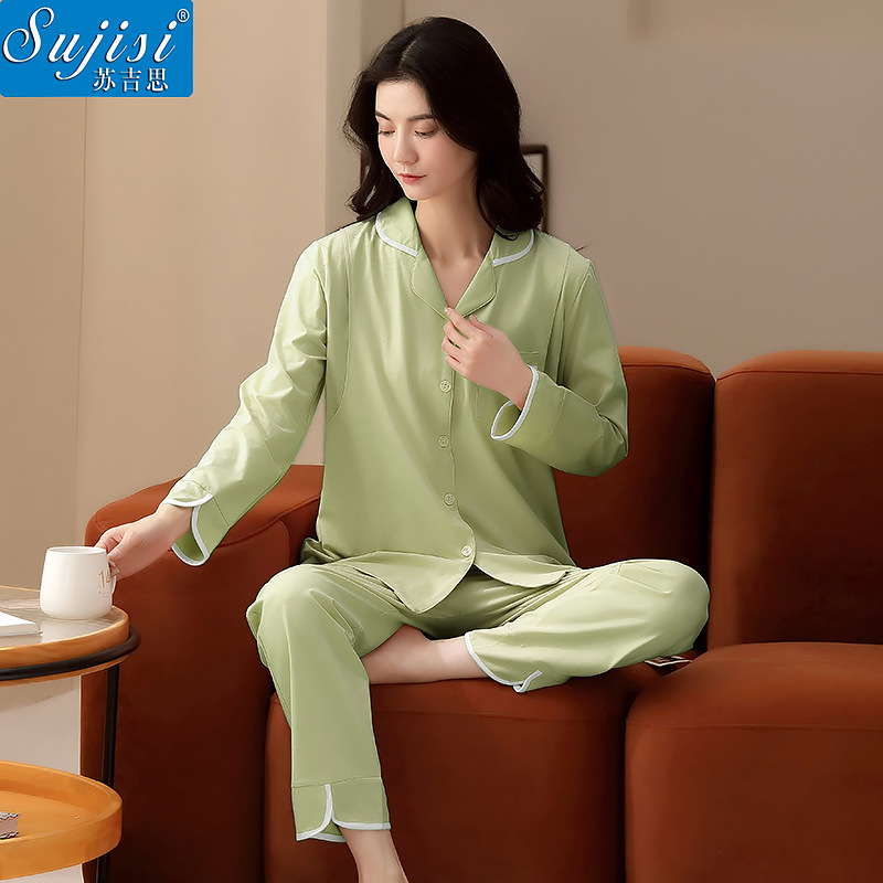 秋の女性の純綿の長袖のパジャマの韓国版のファッションは簡単です。
