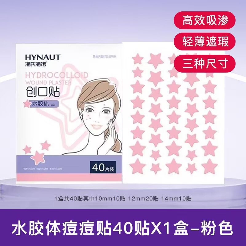 海氏海諾40枚のピンクの水コロイドの傷口はカラーの星の五角星のニキビを貼って隠れてニキビの印を隠します。