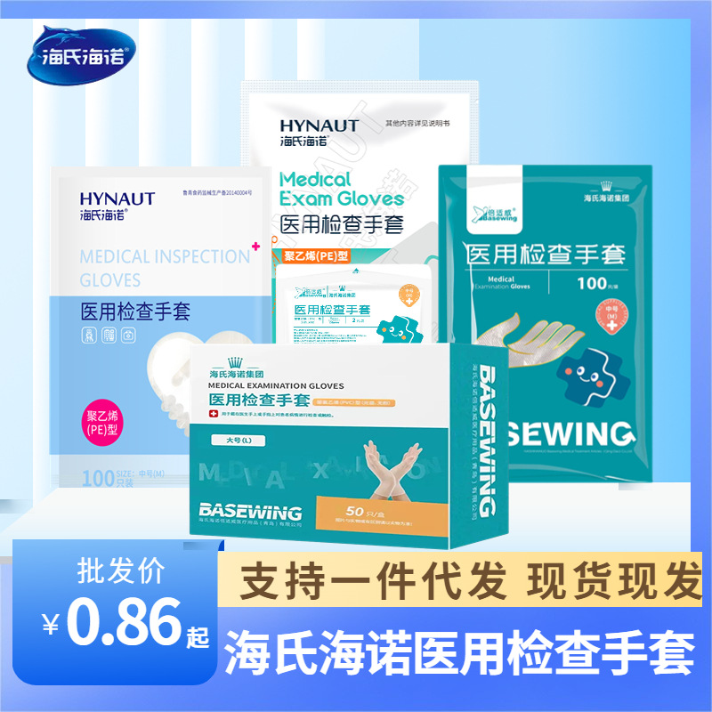海氏海諾使い捨て医療pe検査手袋家庭用食品衛生透明プラスチックフィルム手袋