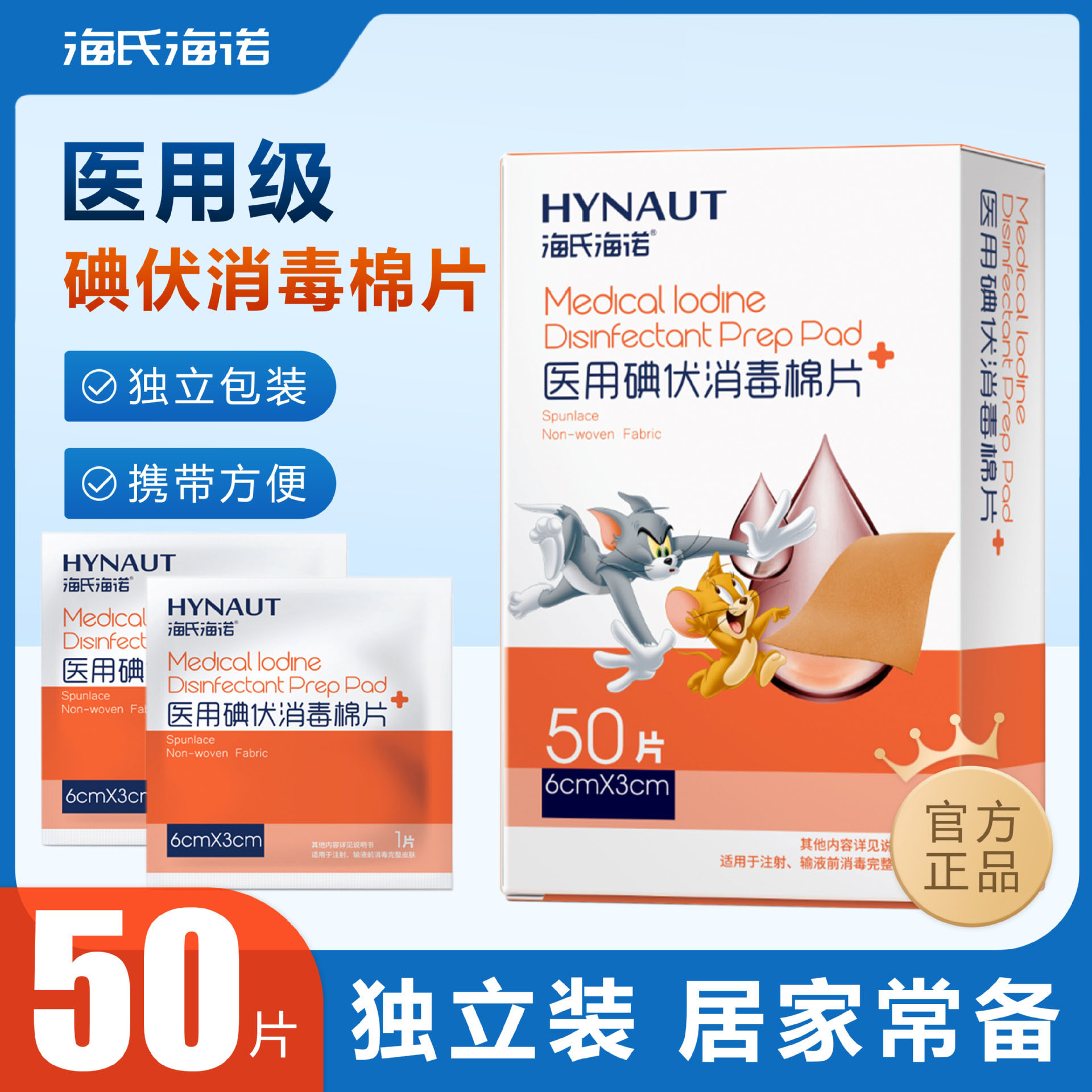 海氏海诺50枚6cm * 3cm医療用ヨウ素ボルト消毒綿片使い捨て傷洗浄消毒タオル綿片