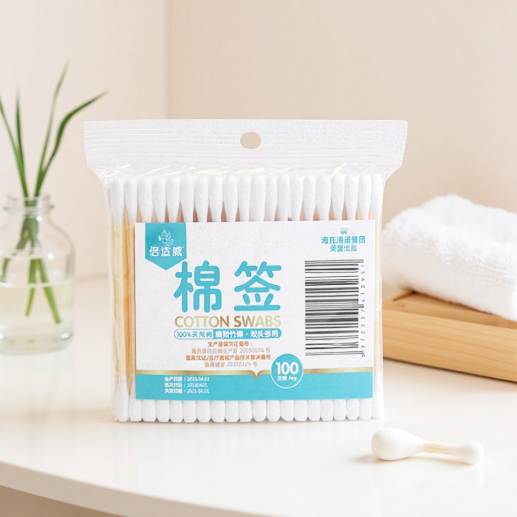 海氏海諾 100本入り両頭綿棒 使い捨て綿棒 赤ちゃんの耳かき 綿球 耳かき メイク落とし