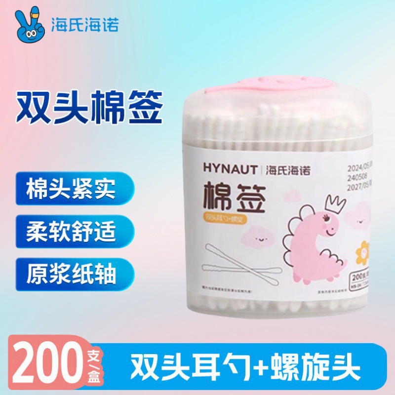 Haishi Hainuo 200 個幼児耳かき綿スプーン双頭綿棒ベビークリーニングと消毒紙軸スティック綿棒