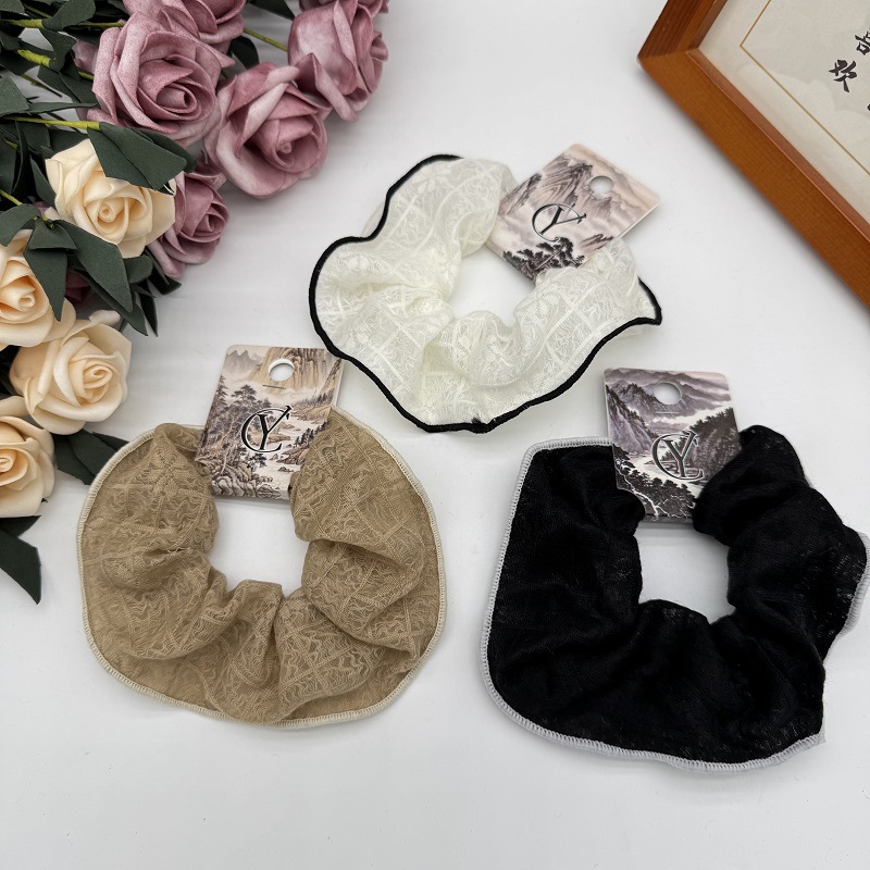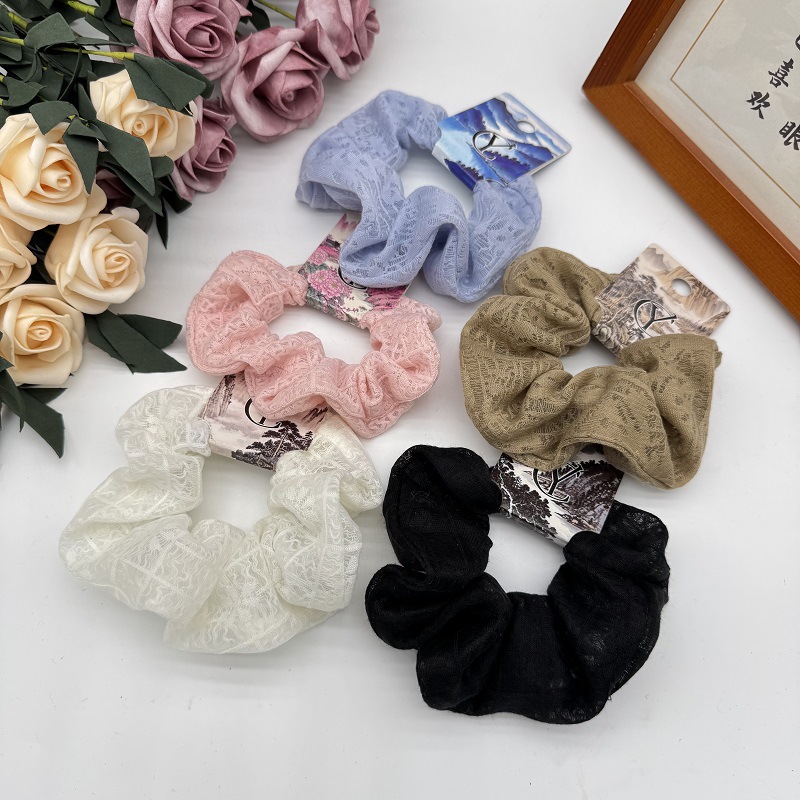 韓国イン気質中空レースかぎ針編み無地ヘアゴムレトロ生地ヘアロープ多用途帽子ゴムバンド