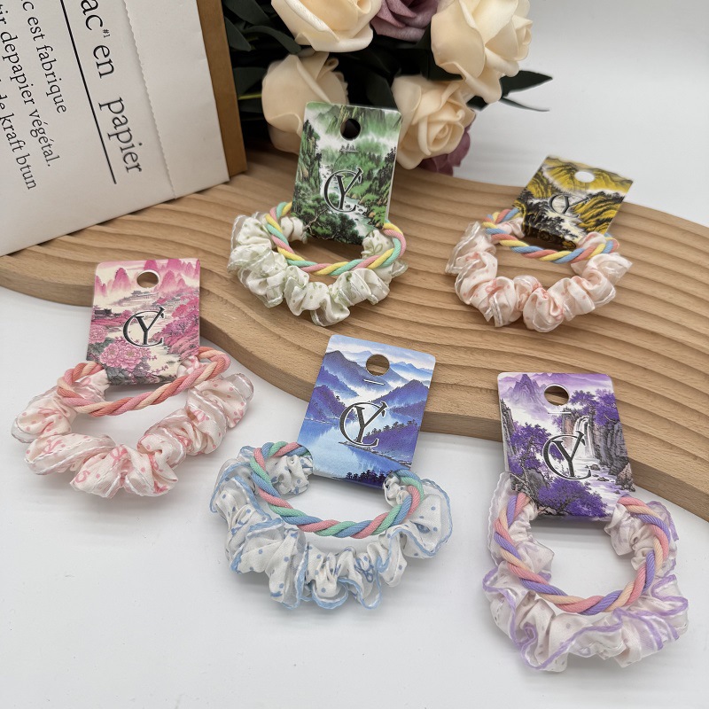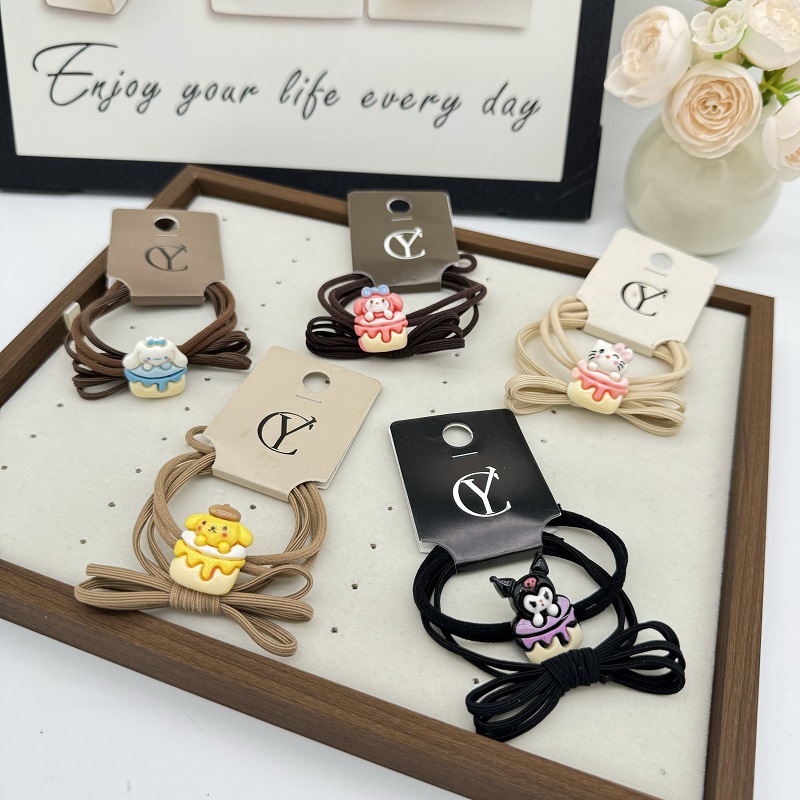シンプルな気質のヘアロープヘアゴム 2025 新しい漫画ゴムバンドヘアアクセサリーブラウンカラーミックスリボンヘアロープ
