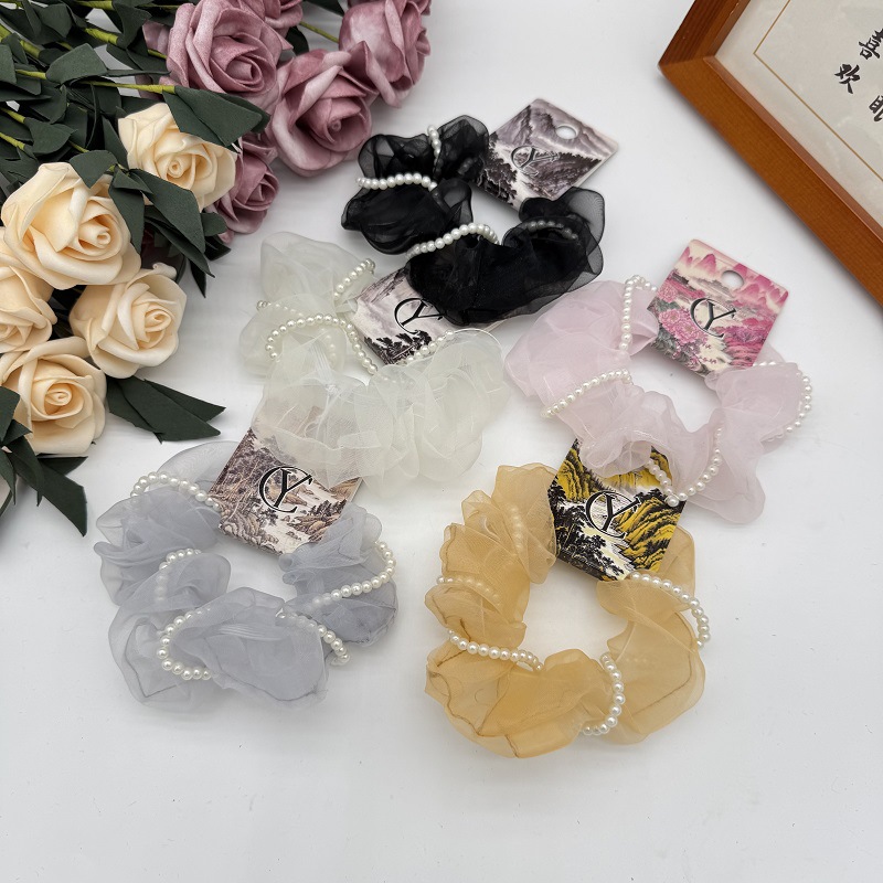 韓国オーガンザパールヘアバンドネット有名人同じスタイル高弾性ポニーテールボールヘアゴムバンドヘアアクセサリー女性用