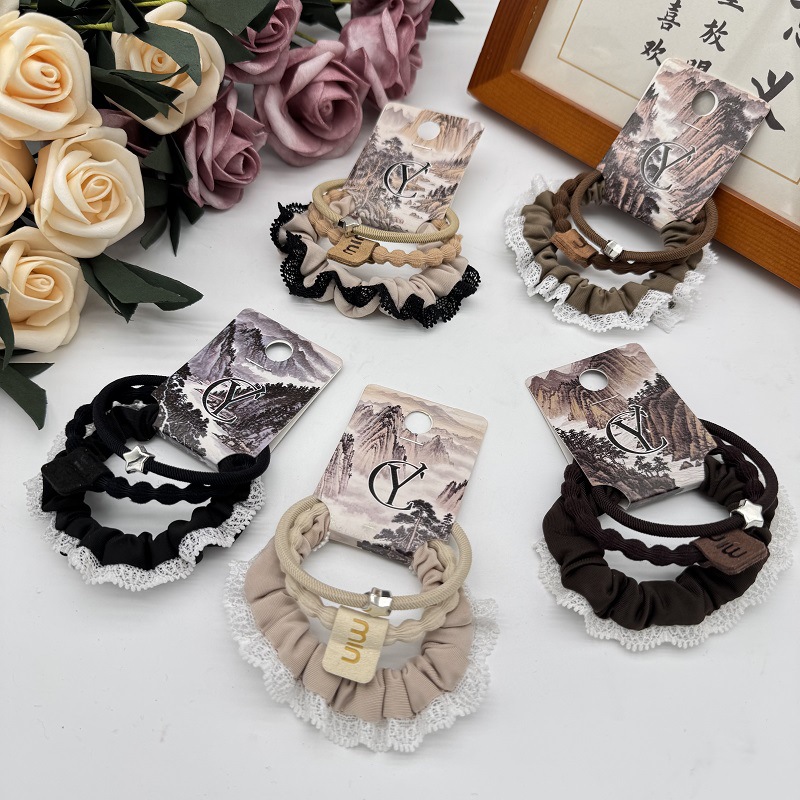 高弾性と耐久性のあるヘアゴムツーインワンゴムバンド女性のヘアゴム 2025 夏ブラウンフォーインワン細いヘアロープヘアゴム