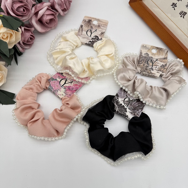 フレンチインテントヘアロープ女性ネットセレブサテン小さなパールヘアリング韓国ガールインシンプルなヘアアクセサリースカルプバンド