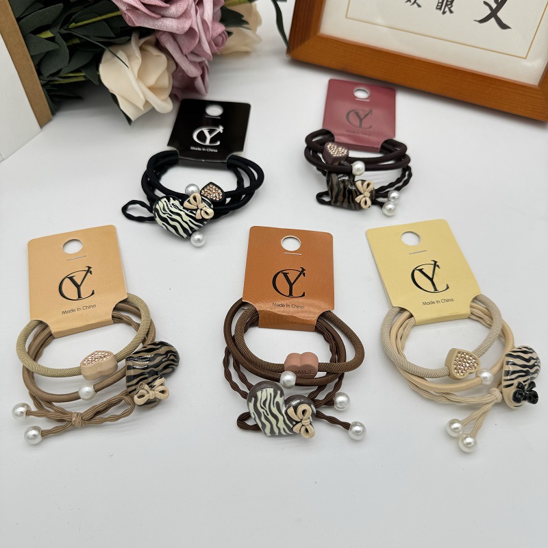 2025 新コーヒーカラー混合結び目ヘアロープヘアアクセサリー弓ゴムバンドシンプルなパールヘアリング漫画ヘッドロープ