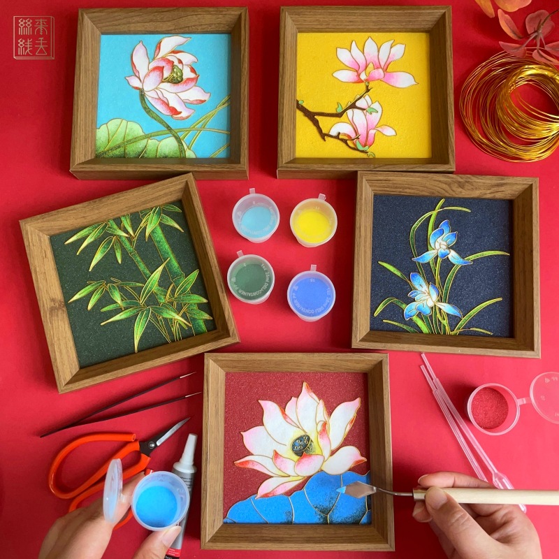 糸エナメル画diy団建活動diy景泰藍金糸沙画学生作業非遺品手作り材料包