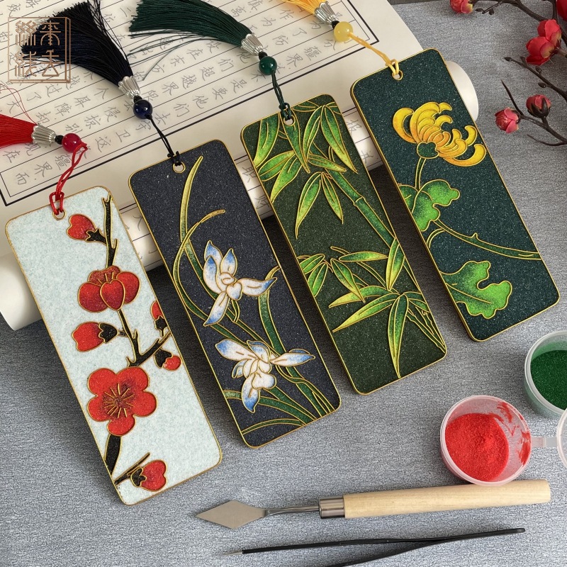 1時間暖場絞め糸エナメル画diy入門モデルブックマーク中国風景泰青非遺品手作り団建活動