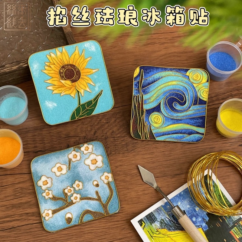 七宝焼きエナメル冷蔵庫マグネット DIY 手作り素材 ゴッホの有名な絵画七宝焼き無形文化遺産手作りチームビルディング活動