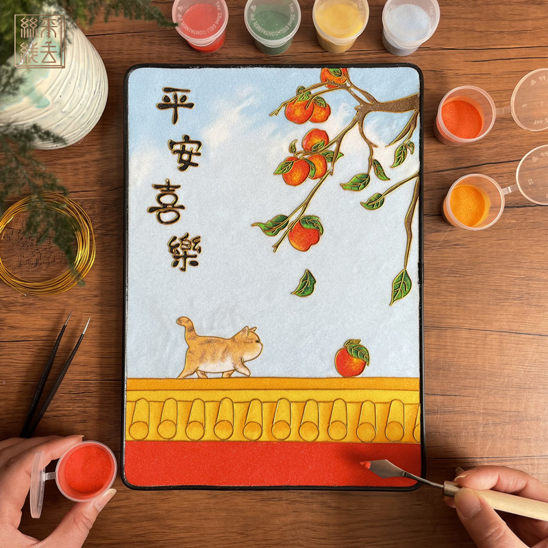 平安如意猫寓意糸エナメル画diy手作り材料包景泰藍零基礎金糸砂画