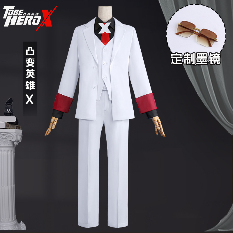 凸変英雄Xcos服白いスーツ二次元アニメ幸運青xコスプレ衣装