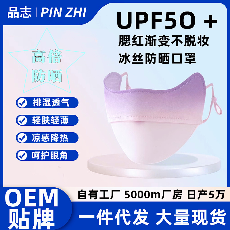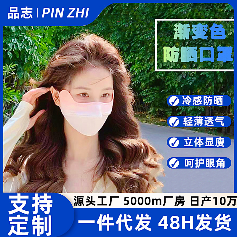 夏の新しいナイロンアイスシルクマスクグラデーションブラッシュ目の保護日焼け止めマスク女性の薄型通気性サンシェードマスク
