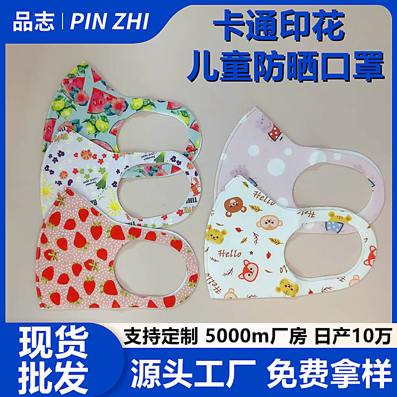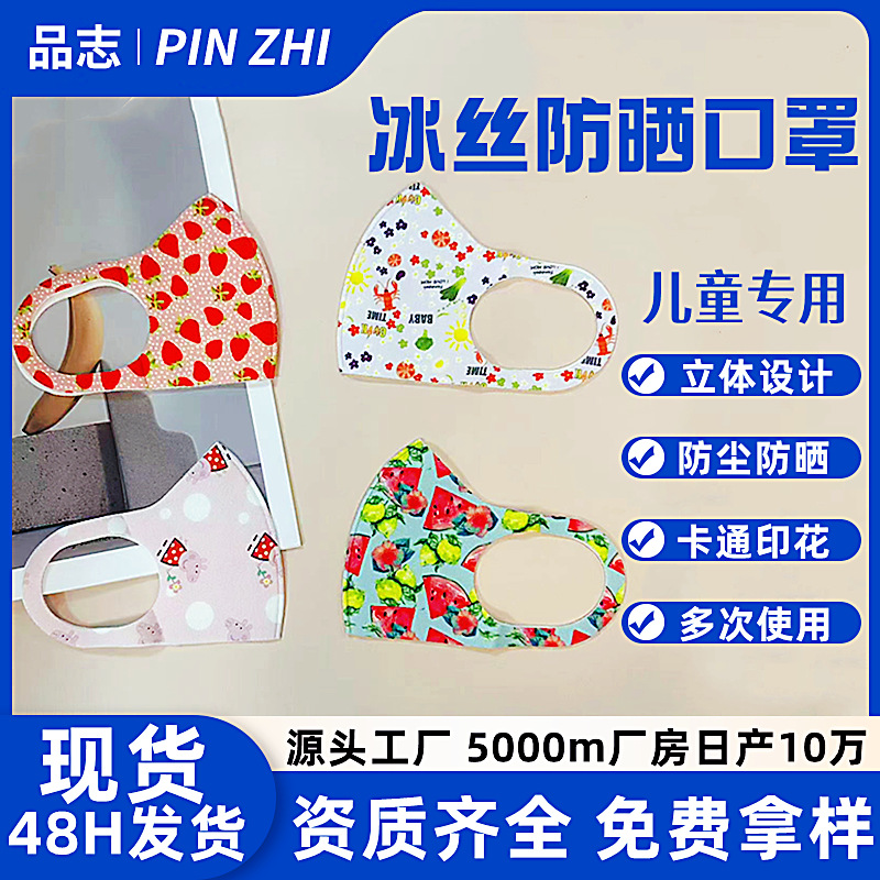 男女兼用マスク、ネット有名人、3D防塵通気性、春夏薄氷シルク立体通気性、子供用漫画プリント