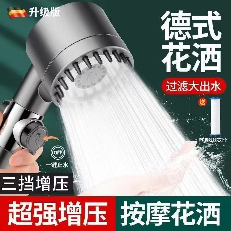 クロスボーダー加圧シャワーヘッドセット、3段階調整フィルターシャワー、ホース、ブラケット、ノズル付き