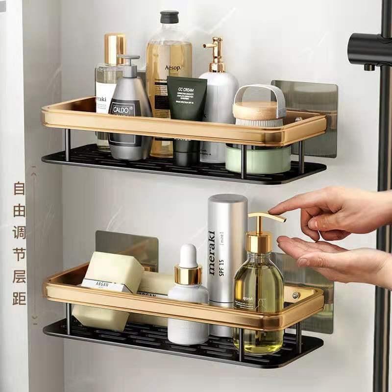 軽量高級バスルームバス収納ラック、スペースアルミニウム製、穴あけ不要、壁掛け式バス用品多機能収納ラック