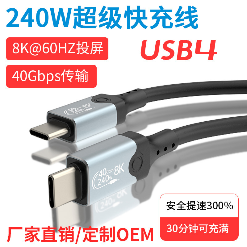 USB4データケーブルPD240W急速充電互換雷4全機能データケーブル40gbps伝送usb4