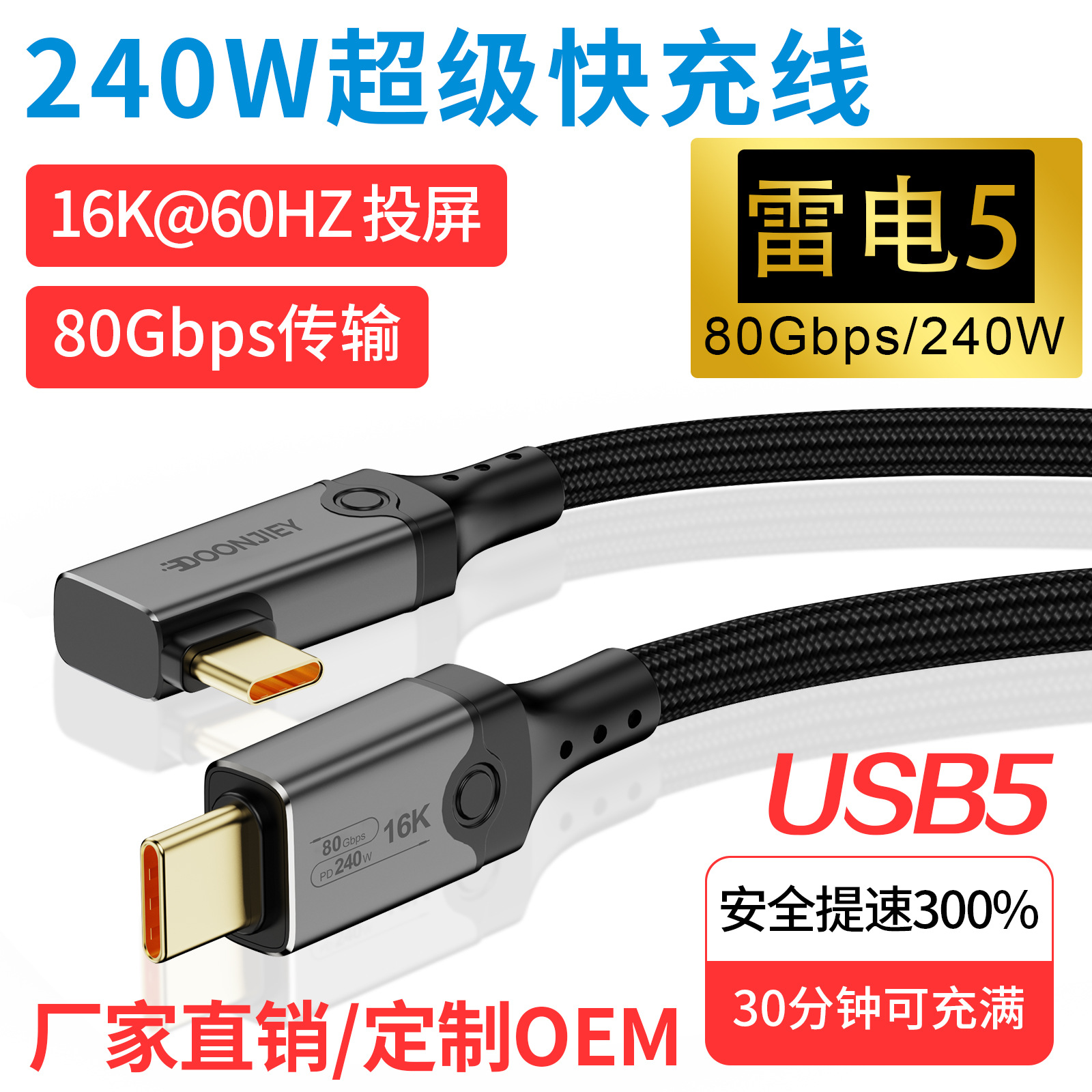 雷5データ線PD240W急速充電16kスクリーン高さ80gbps伝送下互換編組type-c線